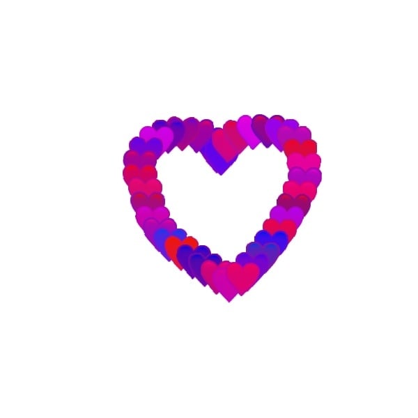 Stamp heart brush I created using Procreate on Apple iPad.   As you make brush stokes on the canvas the hearts change color in the same color family.